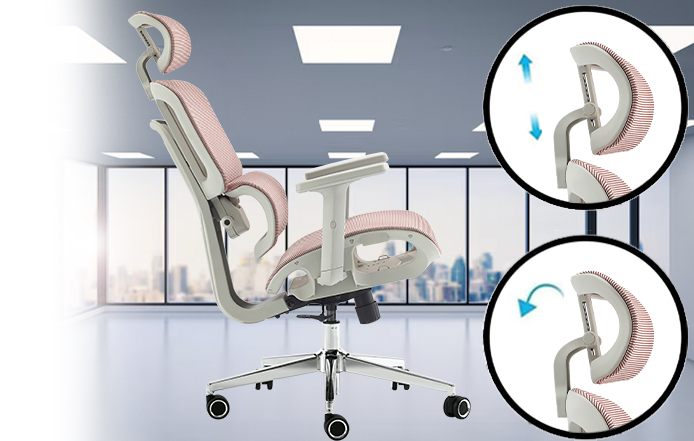 O suporte lombar dinâmico se ajusta aos movimentos do seu corpo, garantindo o suporte ideal para a região lombar. Design ergonômico de encosto alto com assento em cascata que se ajusta à forma única do seu corpo, o que promove uma postura saudável, reduzindo o desconforto e a fadiga. Com nossa cadeira ergonômica Business, você pode se concentrar em suas tarefas sem a distração do desconforto.