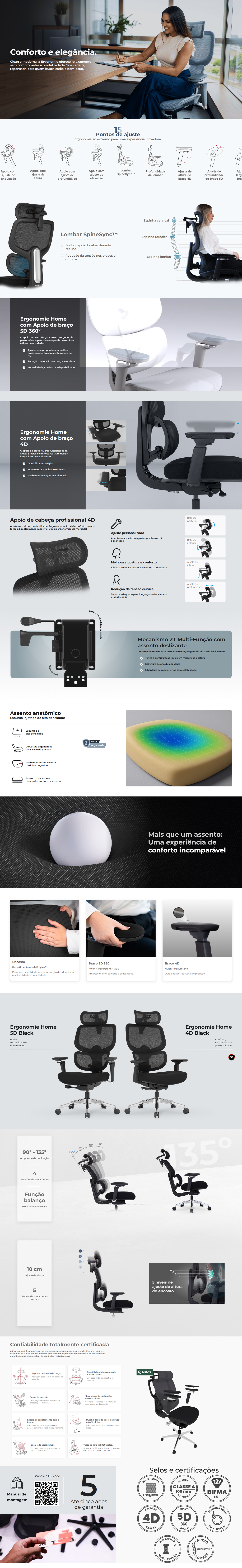 Cadeira de Escritório DT3 Ergonomie Home, 5D, Mesh, Grey