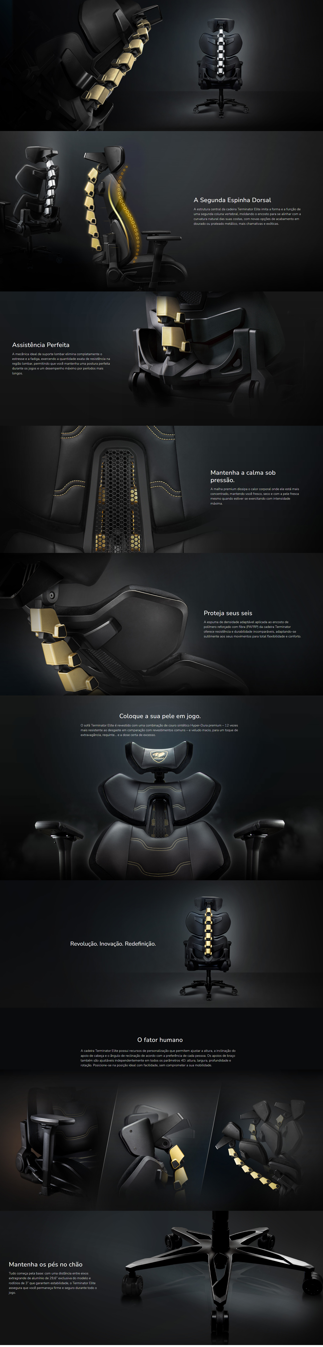 Cadeira Gamer Cougar Terminator Elite Gold, 4D, Preto, CGR-TRE-GLB