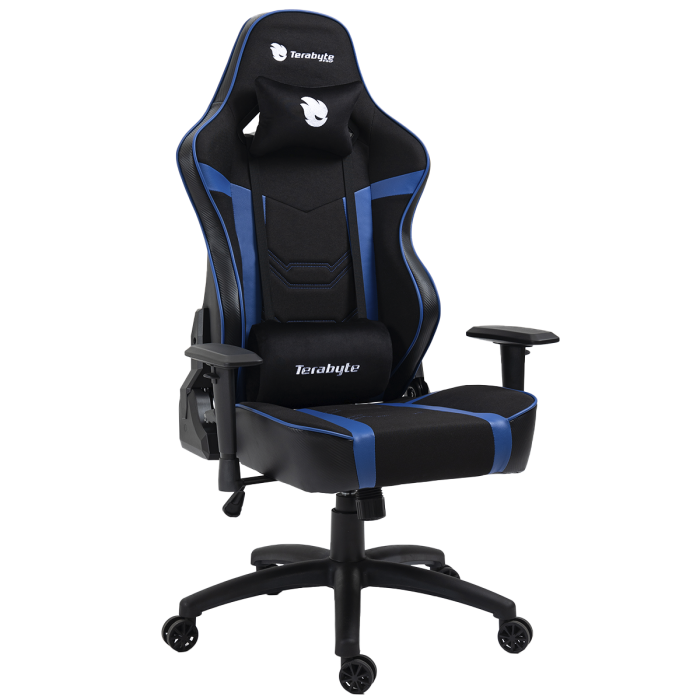 CADEIRA GAMER TERABYTE VISION, RECLINÁVEL, 2D, SUPORTA ATÉ 120KG, PRETO E AZUL