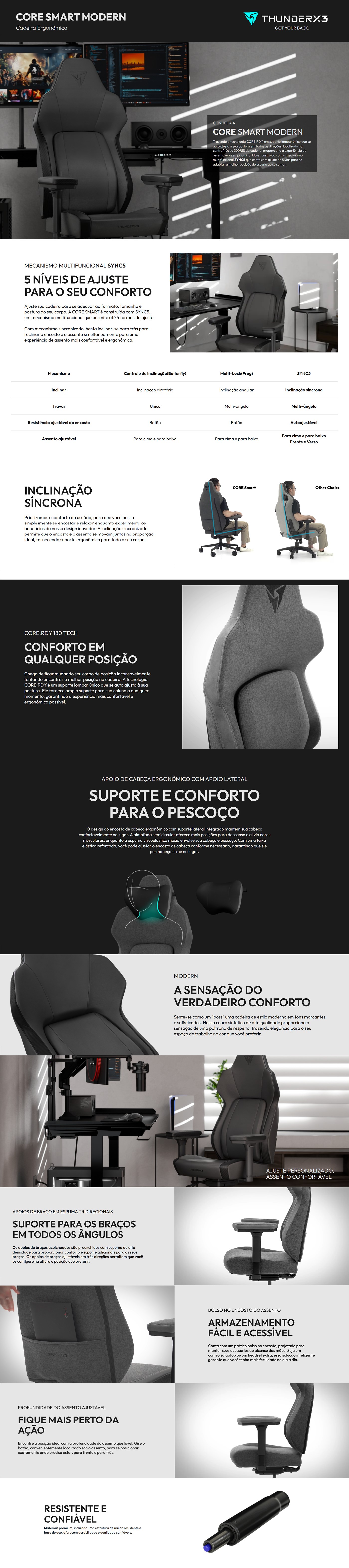 Cadeira Gamer ThunderX3 CORE Smart Modern, Ajustável, 3D, Azul