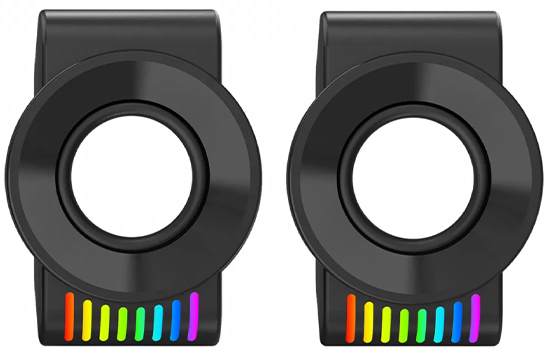 O GS514 é equipado com uma seção RGB piscante abaixo de cada alto-falante, o que oferece uma vibração de jogo ou groove suficiente para seu desktop. Alimentado por USB e cabos de áudio e microfone de 3,5 mm, este astro do rock pode se divertir em diversos tipos de palcos para PC, TV e laptop. Cabo de até 85 cm de comprimento entre duas caixas de som.