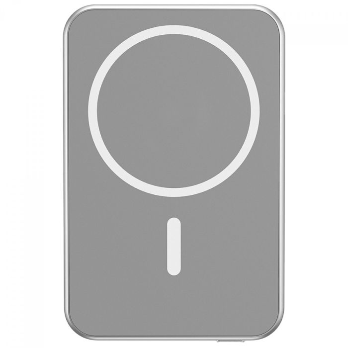 Com um design super compacto e leve, este powerbank de 5000 mAh é extremamente portátil, tornando-se essencial para suas aventuras diárias. O acabamento em alumínio oferece durabilidade e uma sensação premium ao toque, como também assegura um desempenho estável e seguro, graças à sua capacidade de dissipar o calor de forma eficiente. Uma característica impressionante deste powerbank é sua base de carregamento por indução e ímã para os iPhones compatíveis com MagSafe, podendo ser facilmente fixados ao powerbank e o carregamento sem a necessidade de conectar cabos.