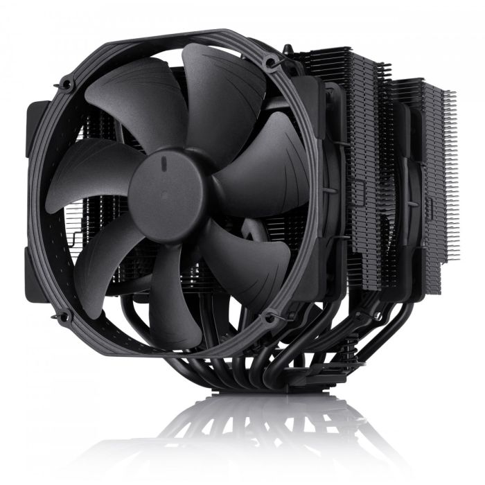 O NH-D15 chromax.black é preto da cabeça aos pés: com um dissipador de calor revestido de preto, fans pretos com almofadas antivibração pretas, clipes de fan pretos e peças de montagem pretas, está em casa em construções totalmente pretas e fácil de integrar com outros esquemas de cores.