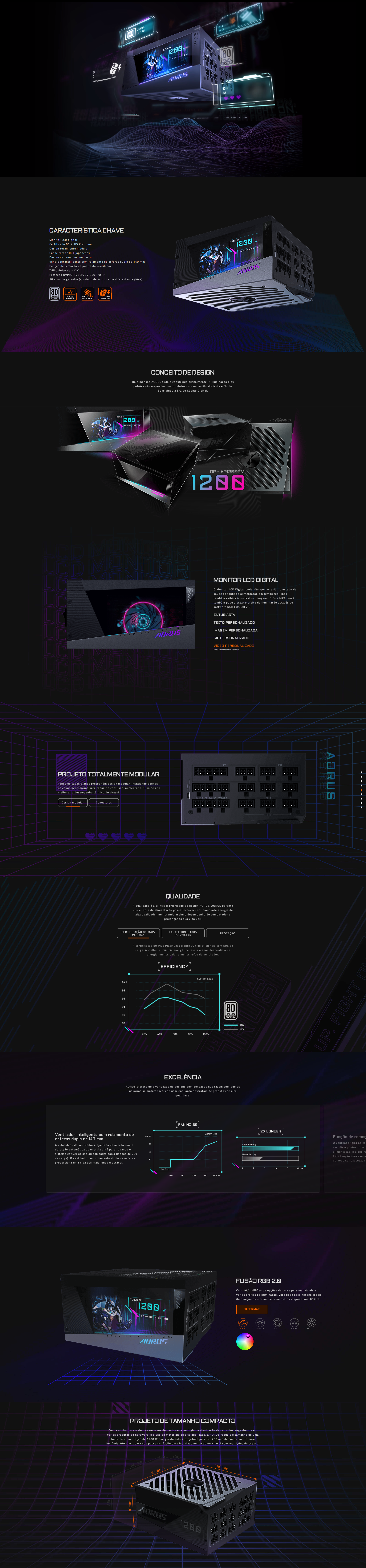 Fonte Gigabyte Aorus AP1200PM 1200W, 80 PLUS Platinum, PFC Ativo, Full Modular, GP-AP1200PM
