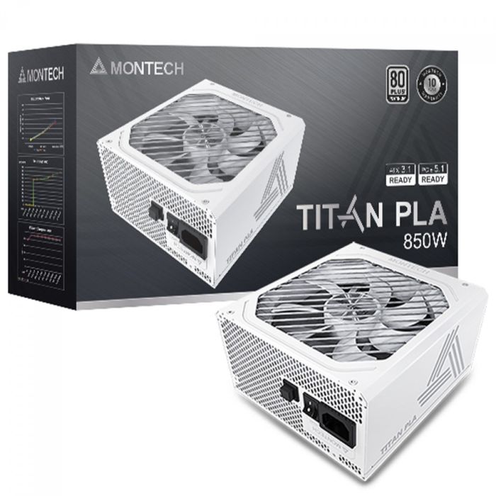 Fonte Montech Titan PLA, 850W, 80 Plus Platinum, PFC Ativo, ATX 3.1, PCIe 5.1, Full Modular, White