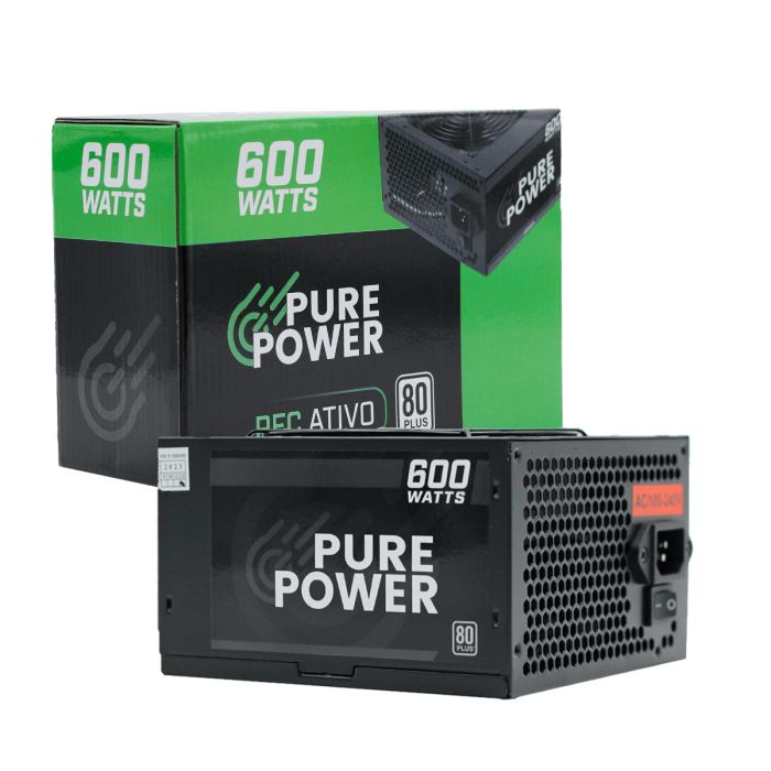 A Fonte PURE POWER possui PFC Ativo, o que significa que ela corrige o fator de potência, melhorando a eficiência e estabilidade do sistema. Com essa tecnologia, a fonte consegue entregar uma potência mais constante e estável, evitando quedas de energia e oscilações que podem prejudicar o desempenho do seu PC Gamer.