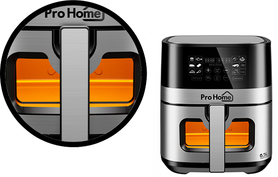 O grande diferencial desta Air Fryer é o visor frontal com luz interna, que permite acompanhar o preparo dos alimentos sem precisar abrir a gaveta. Isso evita perda de calor, mantém a eficiência e torna o processo mais seguro e prático.