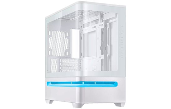 O ASUS Prime AP202 é um chassi mATX panorâmico versátil projetado para exibir os componentes do sistema com estilo. Um painel curvo de vidro temperado se estende perfeitamente da frente para a lateral, oferecendo vistas espetaculares dos componentes de praticamente qualquer ângulo.