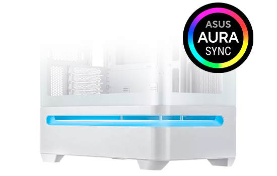Uma faixa de luz ARGB integrada próxima à parte inferior do gabinete oferece efeitos de iluminação espetaculares, com o Aura Sync se adaptando perfeitamente a cenários exclusivos do usuário. Personalize as cores que desejar para fazer seu PC brilhar.