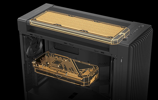 O ProArt PA602 Wood Edition suporta um radiador de 420 mm para resfriamento AIO ou loops de resfriamento líquido personalizados. Ele também oferece espaço suficiente para as placas de vídeo mais robustas nas posições de montagem horizontal e vertical.