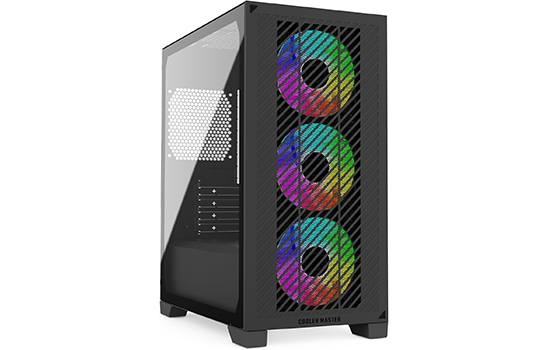 GABINETE GAMER COOLER MASTER ELITE 301, ARGB, VIDRO TEMPERADO, MID TOWER, MATX, COM 3 FANS, PRETO