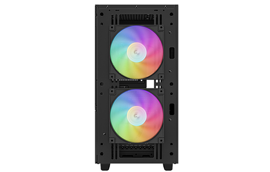 Duas ventoinhas ARGB de 140 mm com PWM luminosas vêm pré-instaladas na parte frontal do CH360 e introduzem uma quantidade abundante de ar fresco no chassi. Essas ventoinhas são montadas fora do compartimento principal para fornecer espaço extra para GPUs modernas, usando menos espaço. Uma ventoinha ARGB de 120 mm está incluída na parte traseira do gabinete para ajudar a dissipar o calor interno da torre.