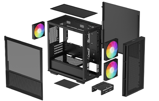 Gabinete Gamer DeepCool CH360, ARGB, Mid Tower, Vidro Temperado, M-ATX, Sem Fonte, Com 3 Fans, Preto, R-CH360-BKAPE3-G-1