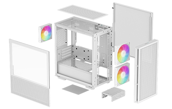O CH360 WH fornece fluxo de ar excepcional de todos os lados do gabinete; da parte frontal de alto fluxo de ar ao painel lateral de vidro temperado híbrido; o ar frio está sempre disponível para os componentes modernos que consomem muita energia.