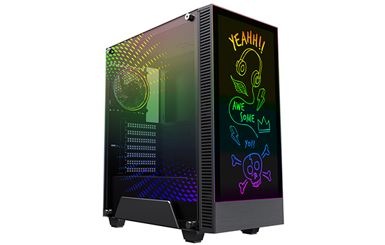 A GameMax tem o orgulho de apresentar o novo Gabinete Gamer Kreator. Seguindo no padrão Mid Tower o gabinete conta com um recurso diferenciado onde o usuário pode facilmente fazer um desenho ou escrever e apagar manualmente no vidro frontal do gabinete.