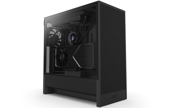 O H5 Flow aumenta o fluxo de ar e o resfriamento da GPU com sua cobertura de PSU perfurada, painéis de malha e grande suporte para radiador, tudo em um formato compacto de torre média.