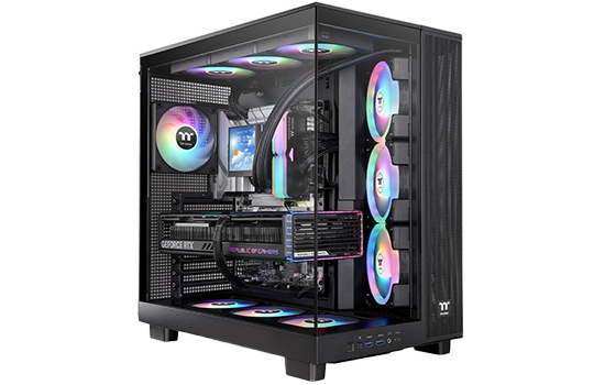 Gabinete Gamer Thermaltake View 380 XL TG, ARGB, Mid Tower, Vidro Temperado, ATX, Sem Fonte, Com 4 Fans, Preto, CA-11E-00M1WN-00