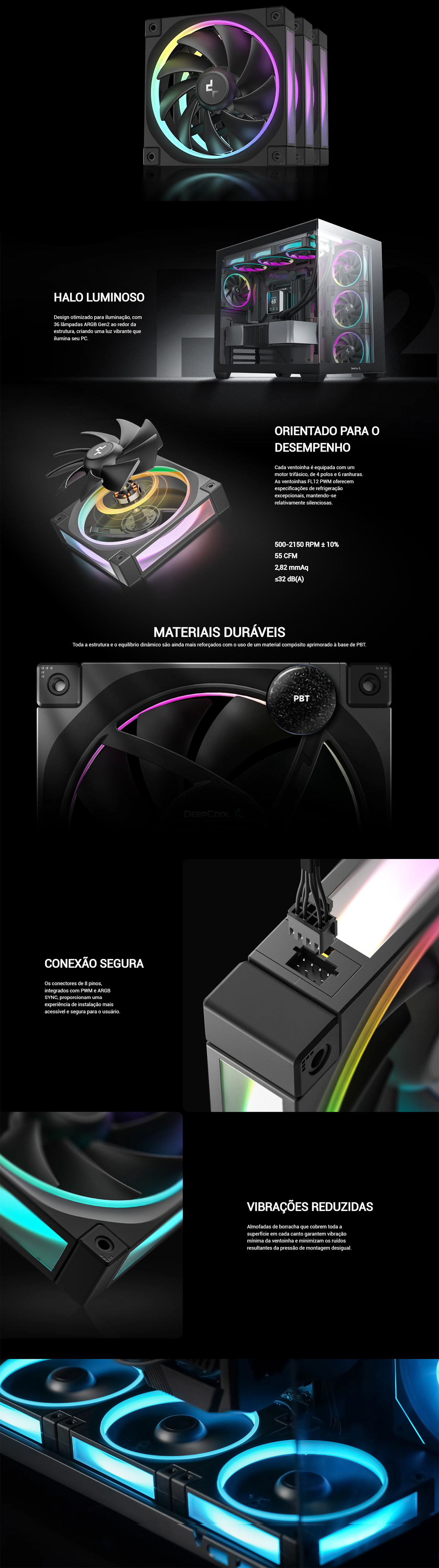 Kit Fan Com 3 Unidades DeepCool FL12, ARGB, 120mm, PWM, Preto, R-FL12-BKAPN3-G