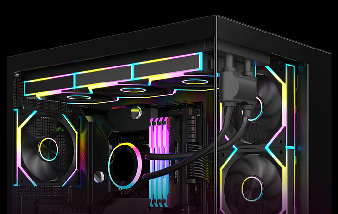 O grande destaque do Kit SuperFrame Pulse está na sua iluminação ARGB vibrante e sofisticada. Cada fan conta com um anel central iluminado e LEDs posicionados nas bordas externas da moldura, criando um efeito visual envolvente que transforma qualquer setup em um verdadeiro espetáculo de luz.