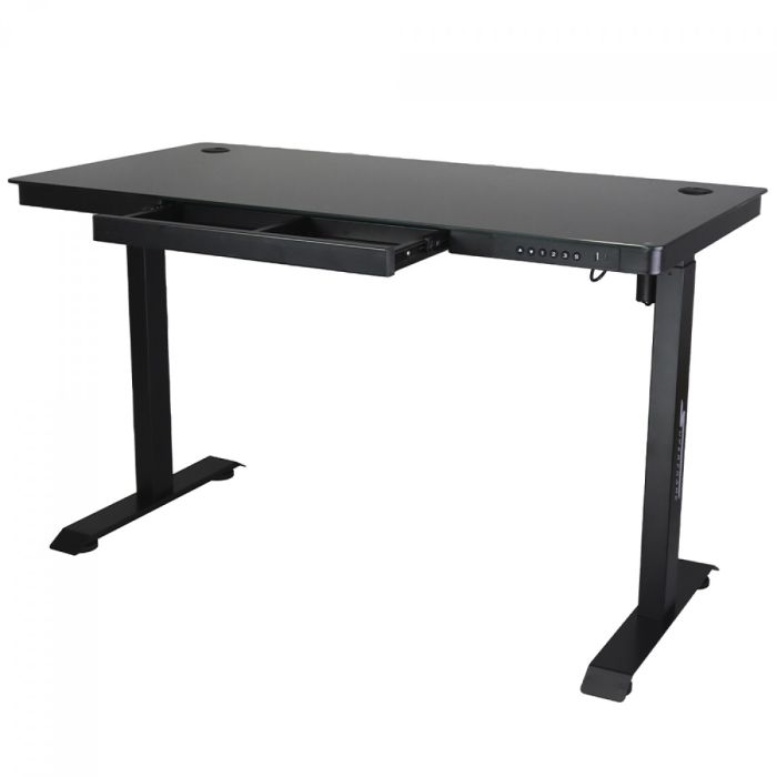 A mesa vem equipada com porta USB integrado, oferecendo praticidade para carregar seus dispositivos diretamente da estação de trabalho. Além disso, possui uma gaveta discreta, perfeita para armazenar acessórios, cabos e outros itens, mantendo tudo organizado e ao alcance.
