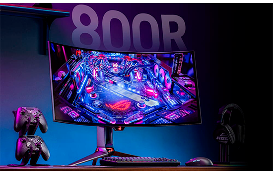 Experimente a emoção de visuais de jogos suaves e responsivos no painel curvo ultrawide de 34 polegadas do ROG Swift OLED PG34WCDM com uma curvatura de 800R. A curvatura do painel imita a forma do olho humano para experiências de visualização incomparáveis, enquanto a taxa de atualização ultrarrápida de 240 Hz garante que as ações rápidas na tela permaneçam fluidas e sem desfoque.