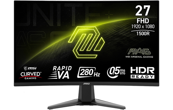 MONITOR GAMER MSI MAG 276CXF, 27 POL, CURVO, FULL HD, RAPID VA, 0.5MS, 280HZ, 102% SRGB, HDMI/DP