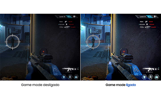 Configurações de jogo otimizadas, vantagem instantânea. O Game Mode ajusta qualquer jogo para preencher sua tela com todos os detalhes à vista. Seus jogos com cores vivas e maior contraste de imagem para detectar inimigos escondidos no escuro.