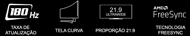 O Vision Ultra v2 possui 180Hz de atualização, uma tela curva de outro mundo, proporção 21:9 UltraWide e conta com a tecnologia FreeSync