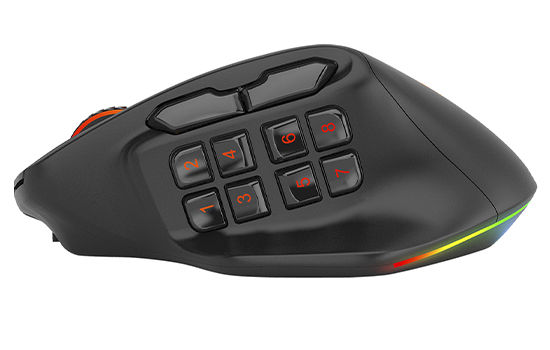 O Aatrox não é apenas um mouse bonito, mas também possui um desempenho excepcional. Equipado com um sensor PAW 3395, ele oferece uma sensibilidade impressionante de até 26000 DPI, garantindo movimentos rápidos e precisos. Otimize seus atalhos, habilidades e macros como quiser. São 8 botões laterais iluminados, perfeitos para dominar raids, arenas e partidas ranqueadas.