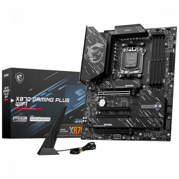 A X870 GAMING PLUS WIFI é constituída por componentes duráveis que proporcionam uma experiência de jogo surreal. Com Wi-Fi 7 e LAN 5G, USB4 de alta velocidade, tecnologia PCIe 5.0, energia suplementar PCIe e recursos exclusivos EZ DIY, ela está mais do que preparada para sessões de gameplay extensas e intensas com os processadores AMD Ryzen™ série 9000.
