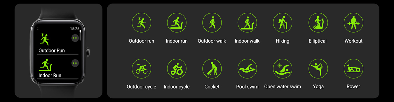 Possui modos esportivos para te acompanhar nos treinos, com monitoramento de frequência cardíaca, saturação e nível de estresse corporal, tudo para você estar por dentro dos seus parâmetros de saúde.