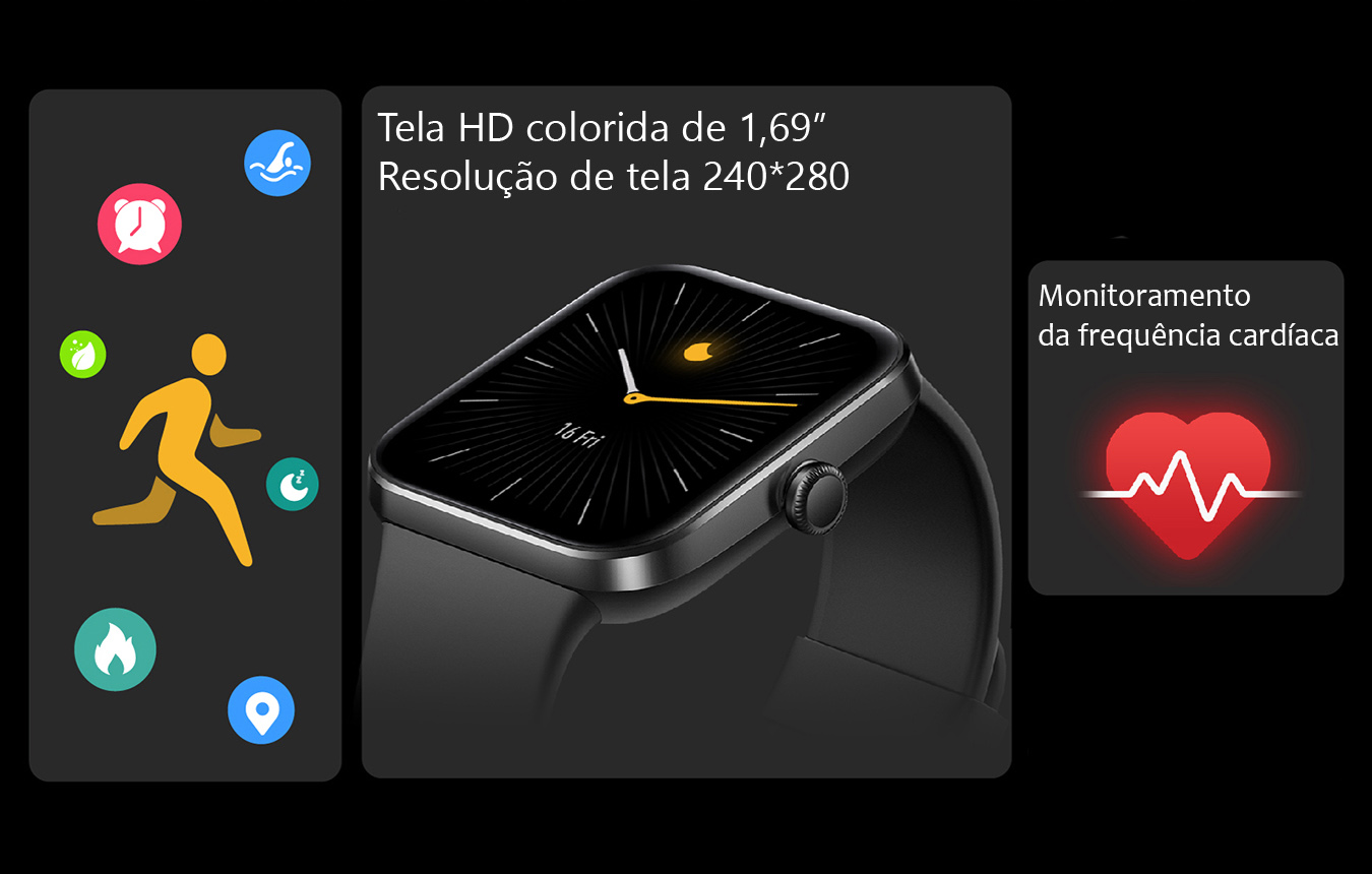 SuperFrame Smart 600, um smartwatch revolucionário com tela de 1,69 polegadas para uma experiência visual incrível. Monitoramento de frequência cardíaca proporcionam cuidados abrangentes com a saúde, enquanto o controle de música e design elegante oferecem conveniência e estilo. Leve o seu estilo de vida ativo para o próximo nível com este dispositivo inovador.